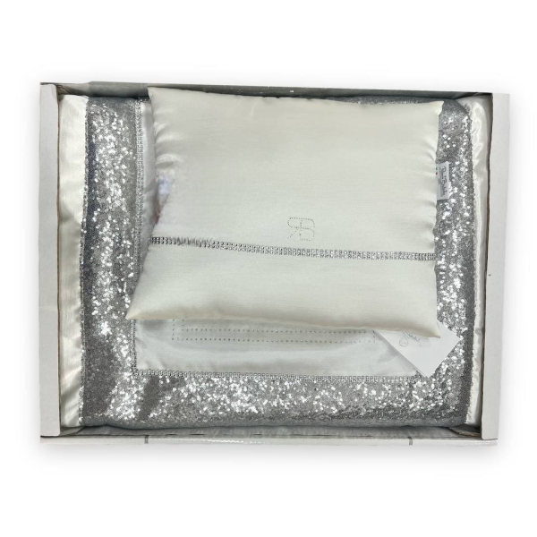Trapuntino Copriletto Matrimoniale Charro Prestige con balza strass effetto Swarovski® e 2 cuscini a fiocco coordinati. Design elegante e moderno, trapuntatura lineare e tessuto 100% poliestere morbido e resistente.