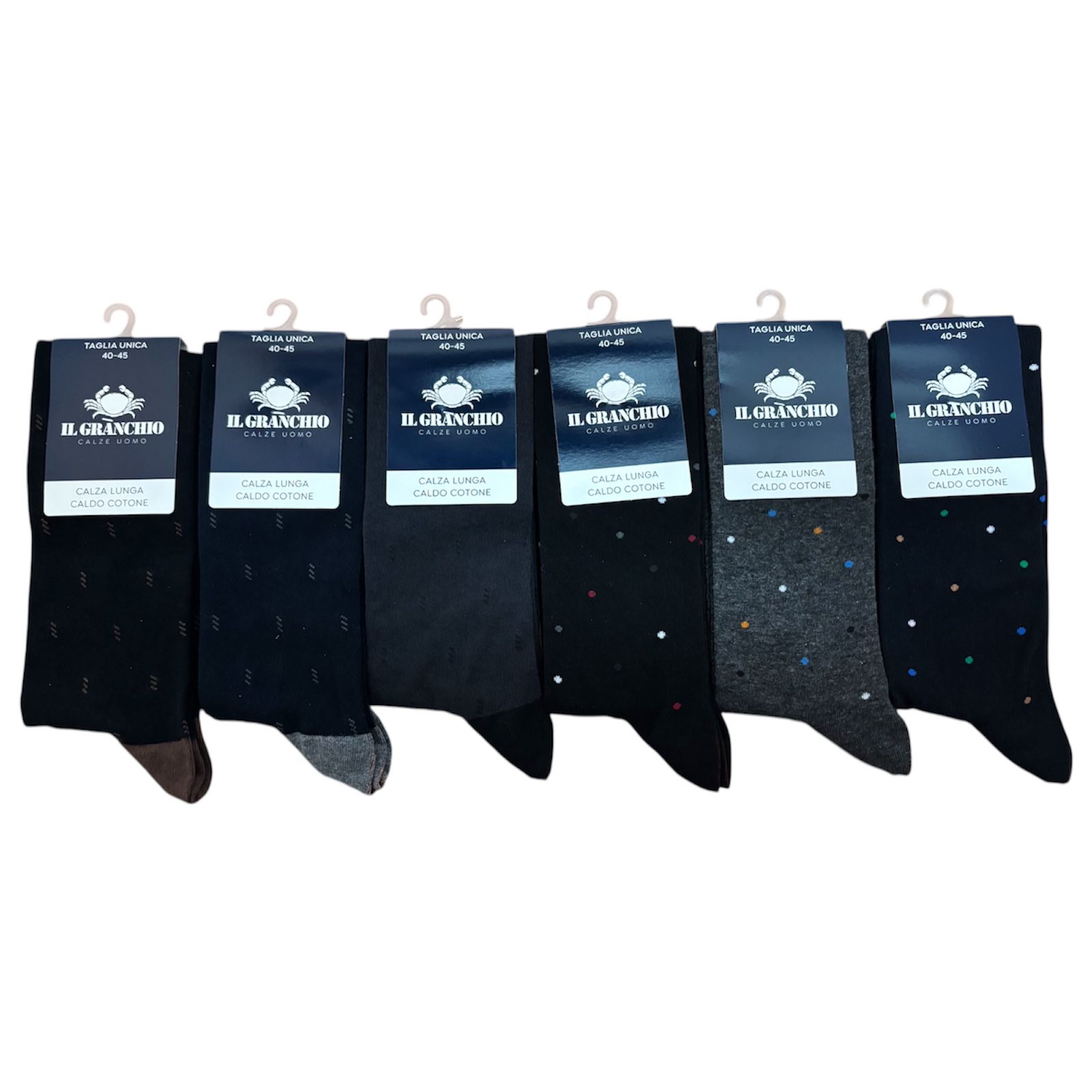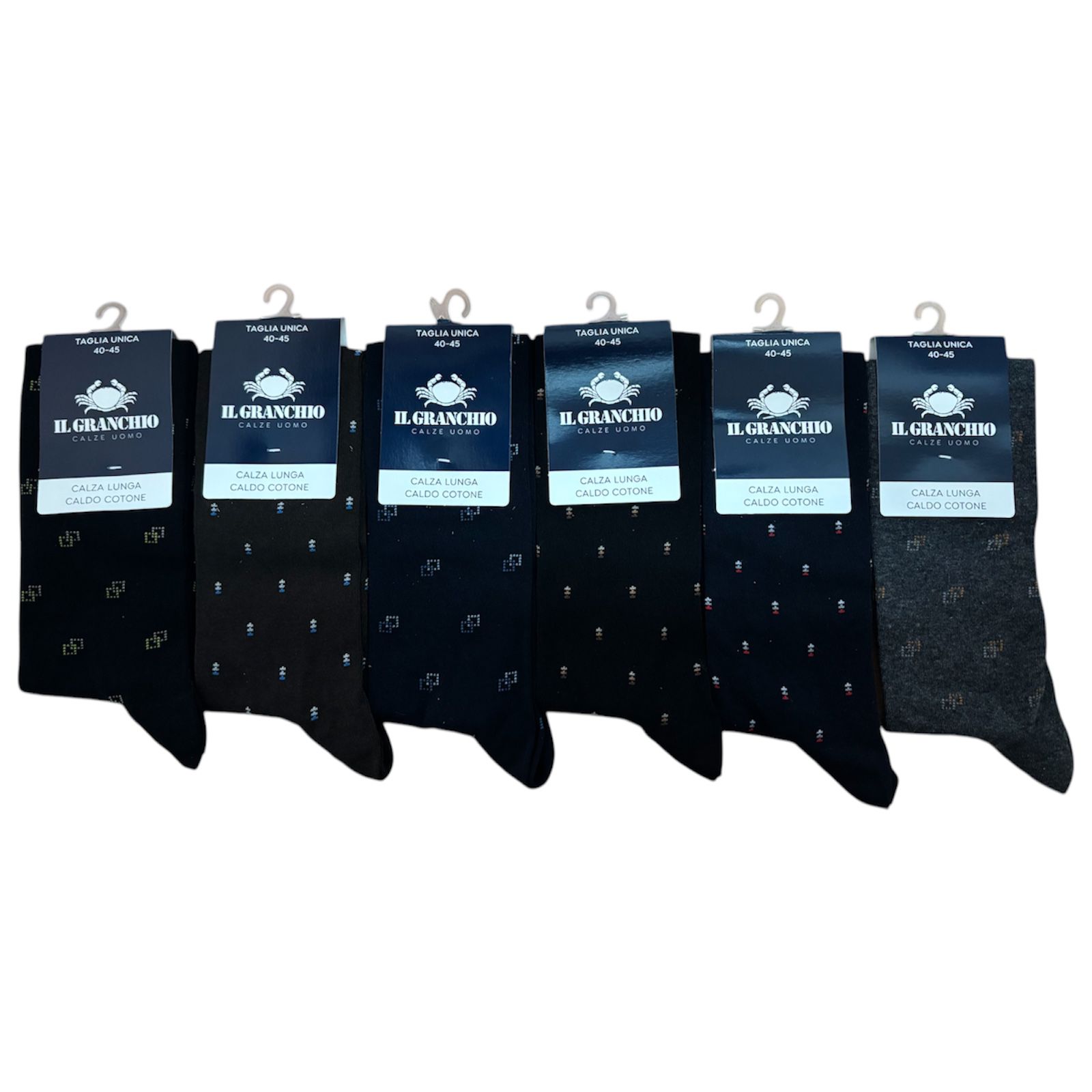 12 Paia Calza Lunga 40-45 Il Granchio Calzini Uomo Caldo Cotone Fantasia Casuale