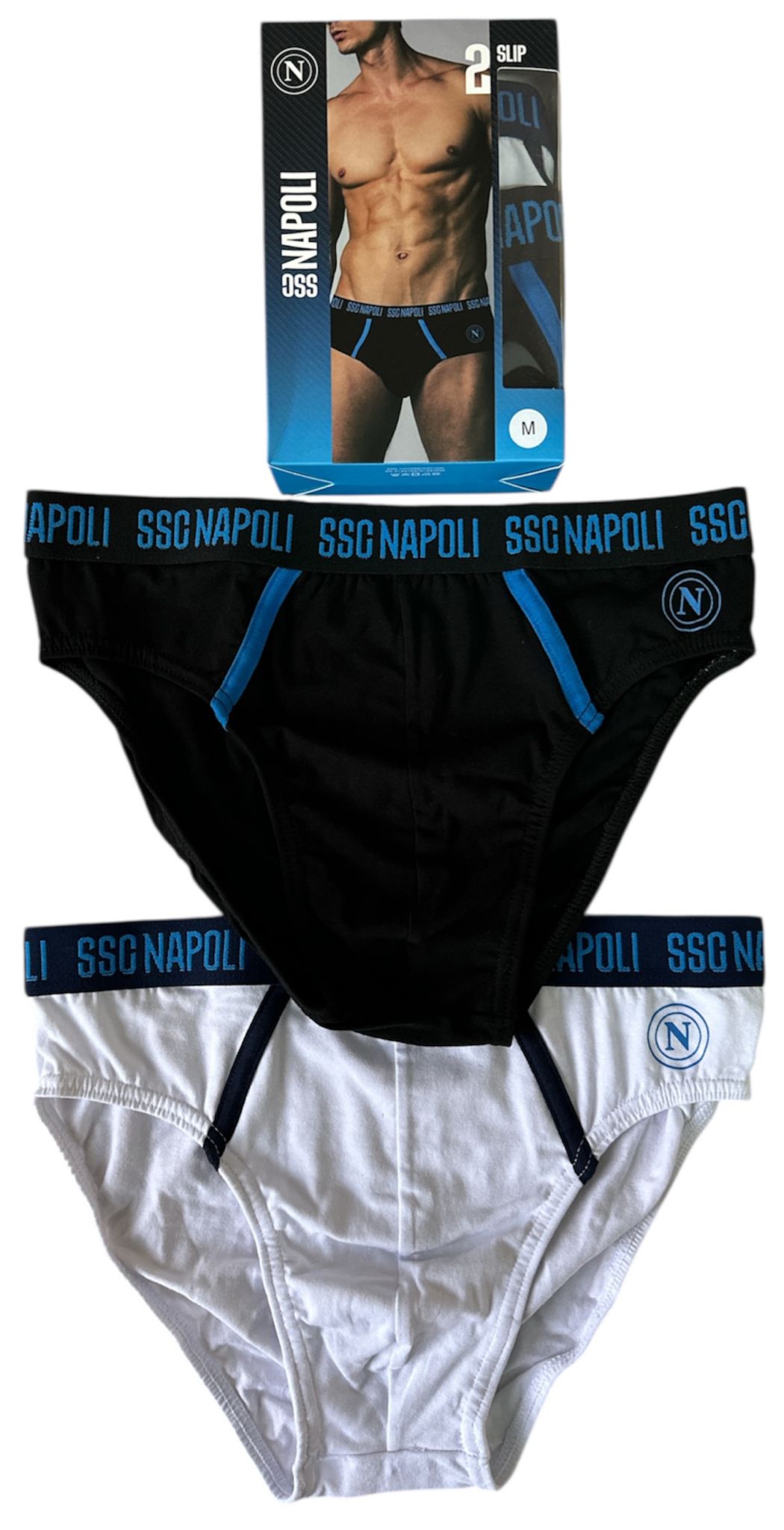 Slip bi-pack uomo del S.S.C Napoli con elastico esterno con logo SSC Napoli