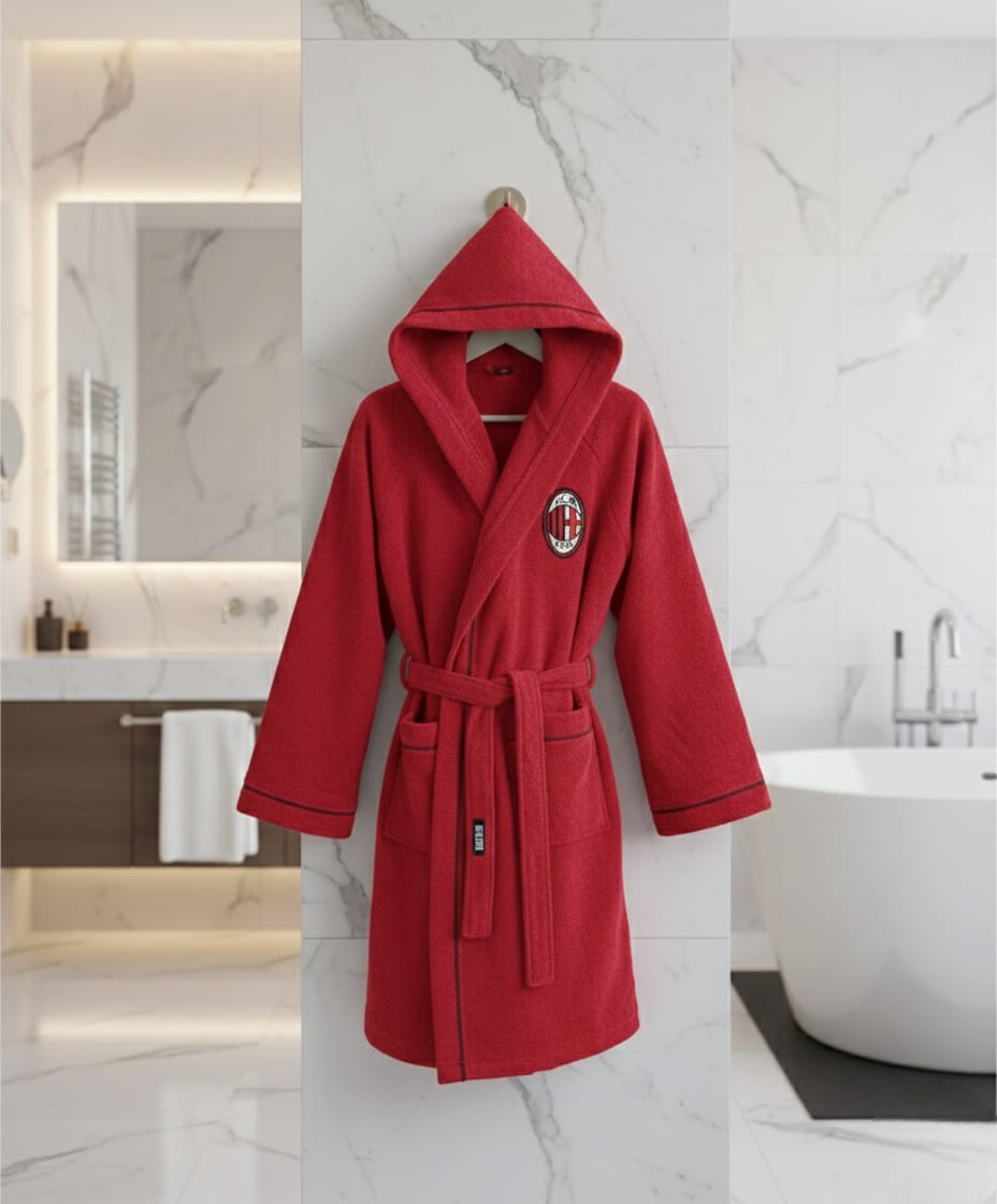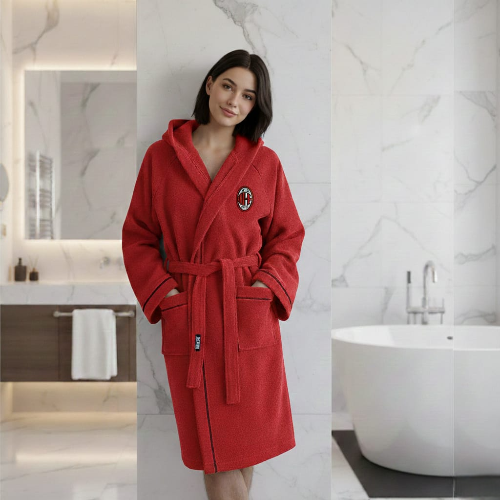 Il modello è caratterizzato dal classico colore rosso ispirato all’A.C. Milan, perfetto per i tifosi rossoneri. Dotato di cappuccio comodo per proteggere la testa e mantenere il calore, presenta due tasche frontali pratiche e una cintura in vita per una vestibilità regolabile e avvolgente.