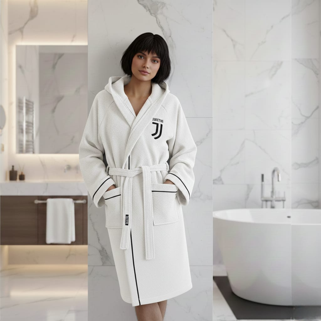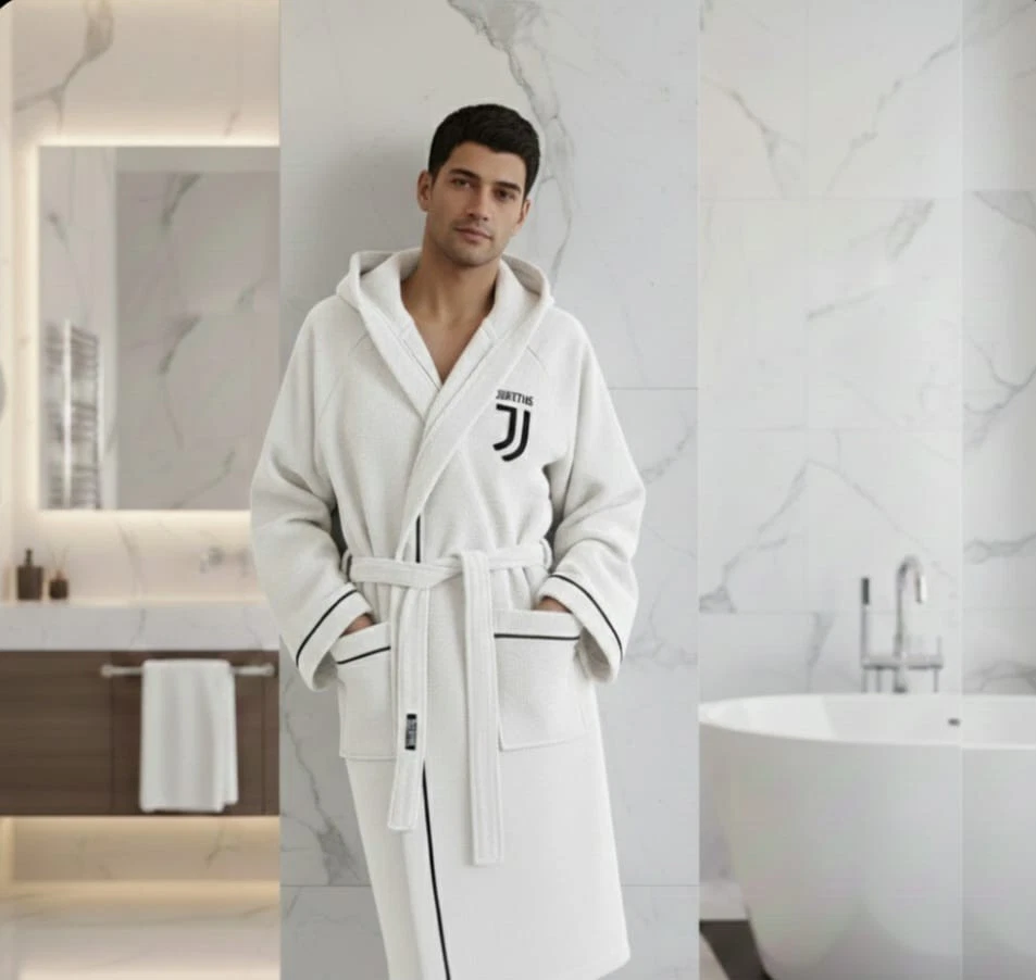 Accappatoio Unisex In Spugna 100% Cotone Calcio FC Juventus Tasche Cappuccio