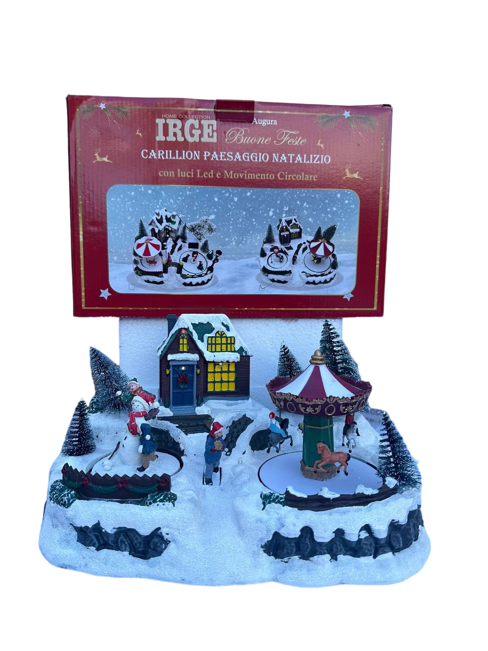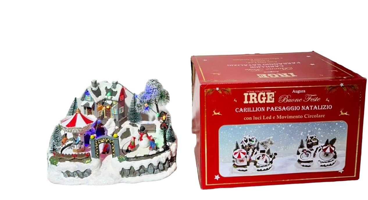 Carillon Irge Natale Paesaggio Natalizio Con Luci Led e Movimento Circolare