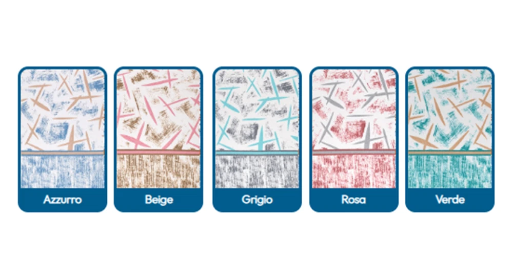 | Colore | Azzurro, Beige, Grigio, Rosa, Verde |