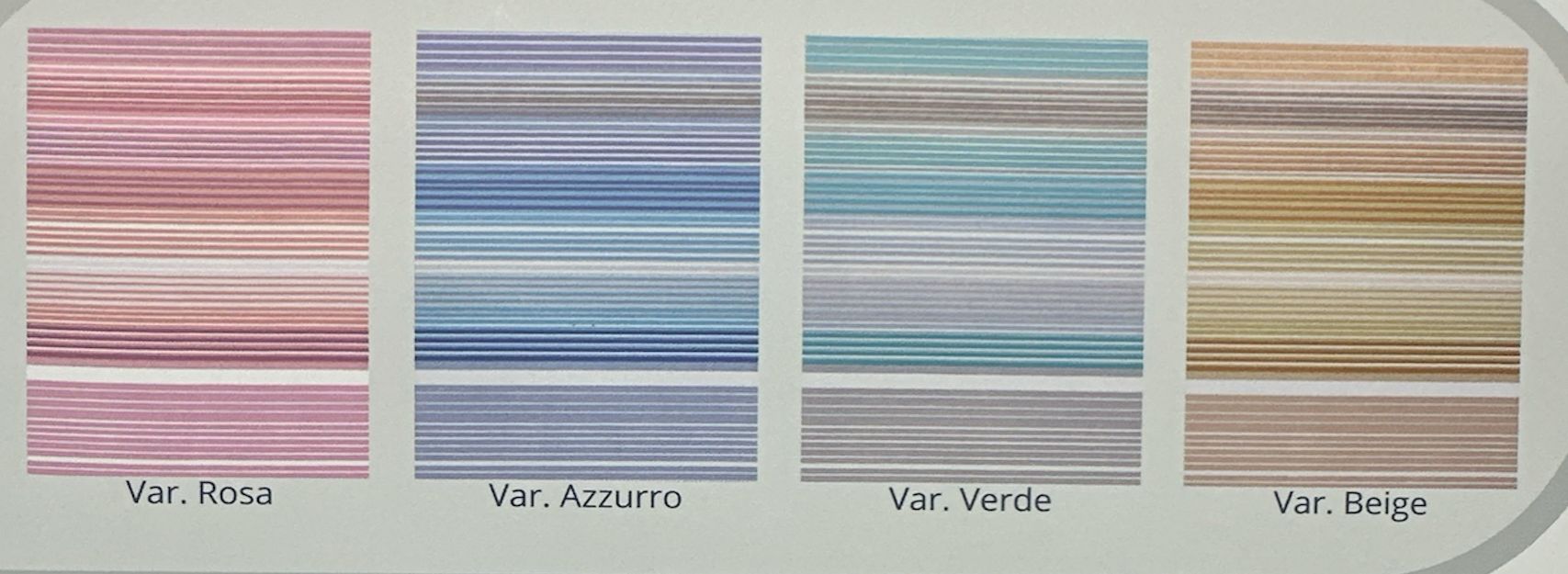 | Colore | Azzurro, Beige, Rosa, Verde |