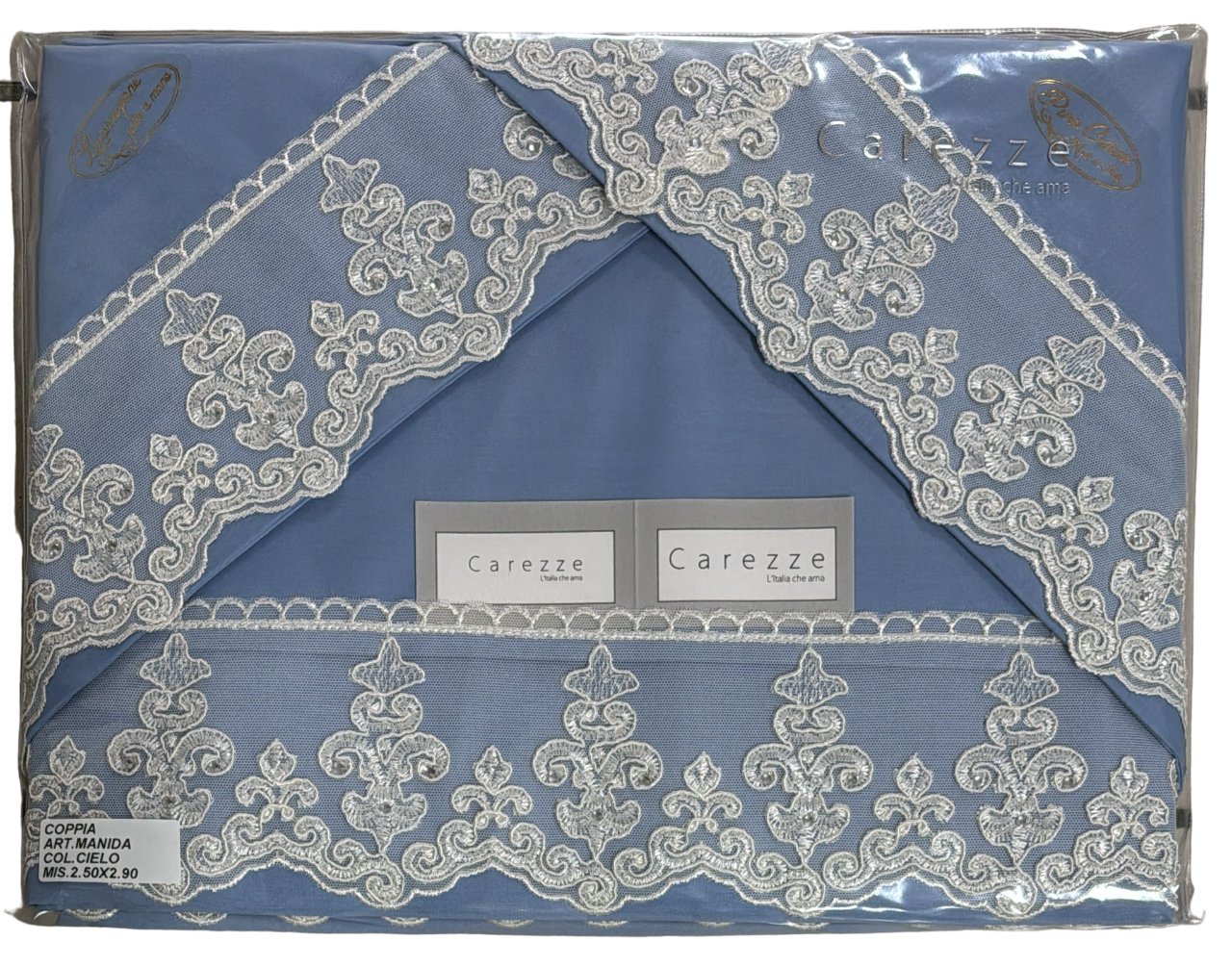 Completo lenzuola Manida con pizzo in pregiato Rebrodè