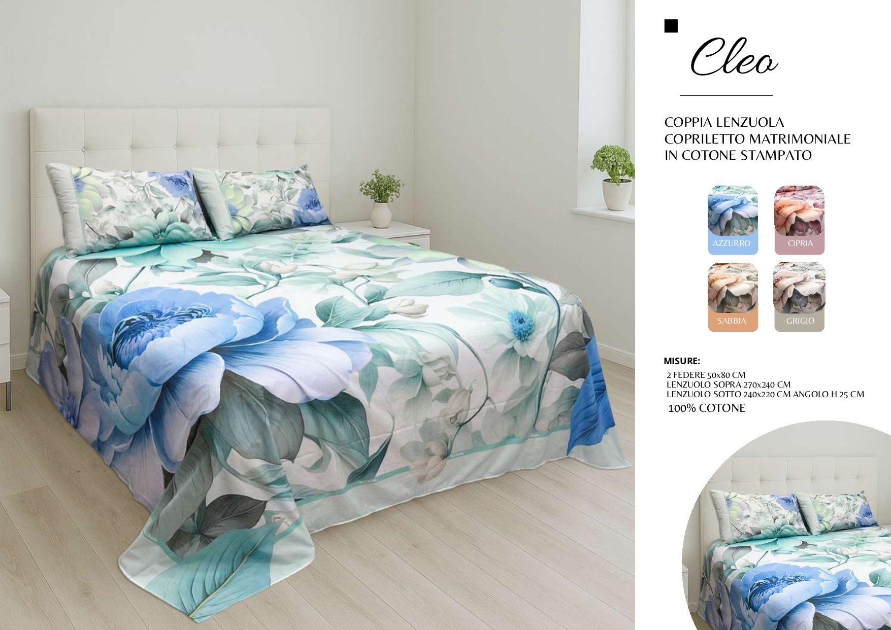 Lenzuola sopra: 240×270 cm