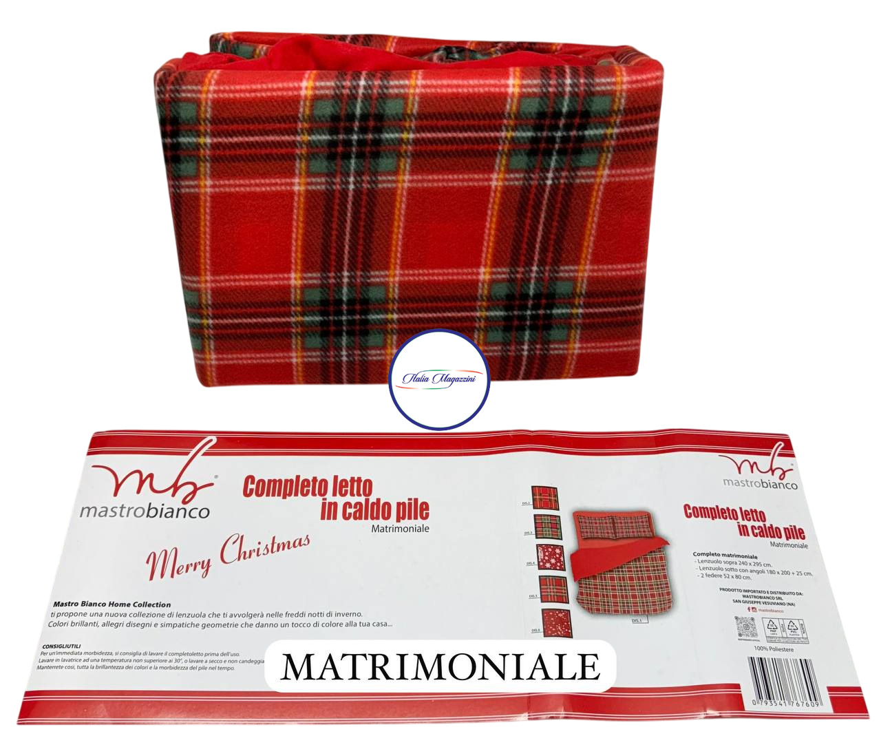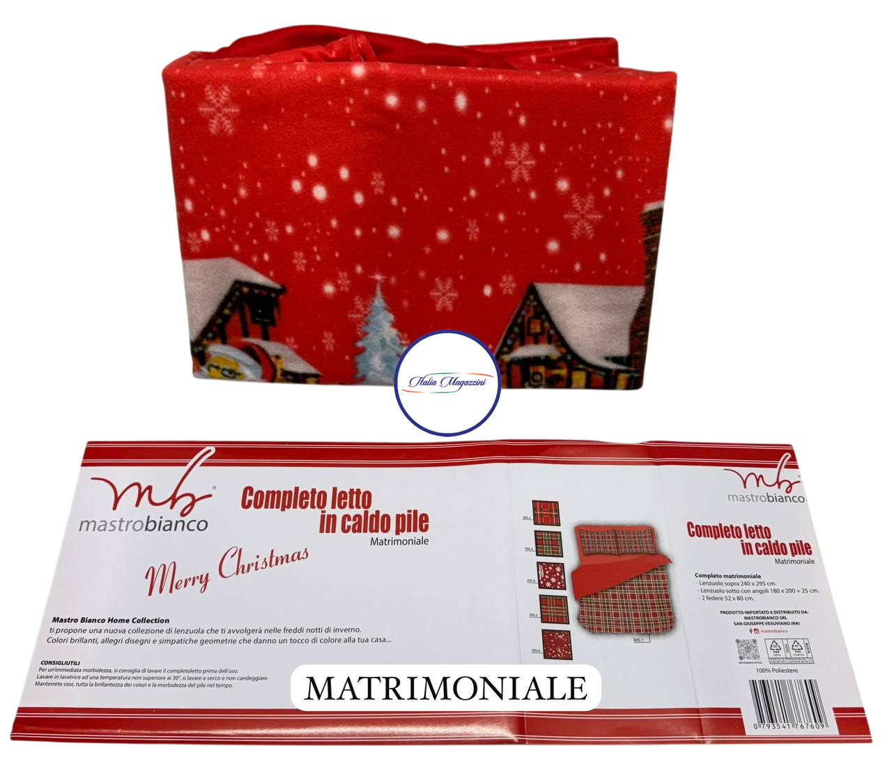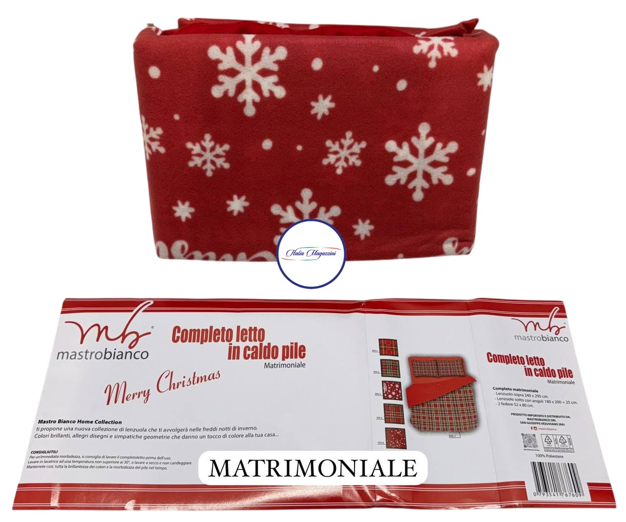 Completo Lenzuola Invernale Letto Matrimoniale Morbido Pile Fantasia Natalizia