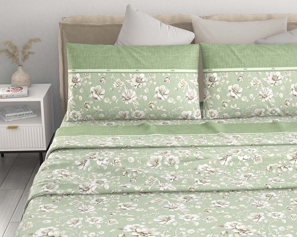 Lenzuola in 100% flanella, prodotta interamente in Italia, estremamente morbida, calda e confortevole, di notevole qualità ed eleganza in fantasia floreale.