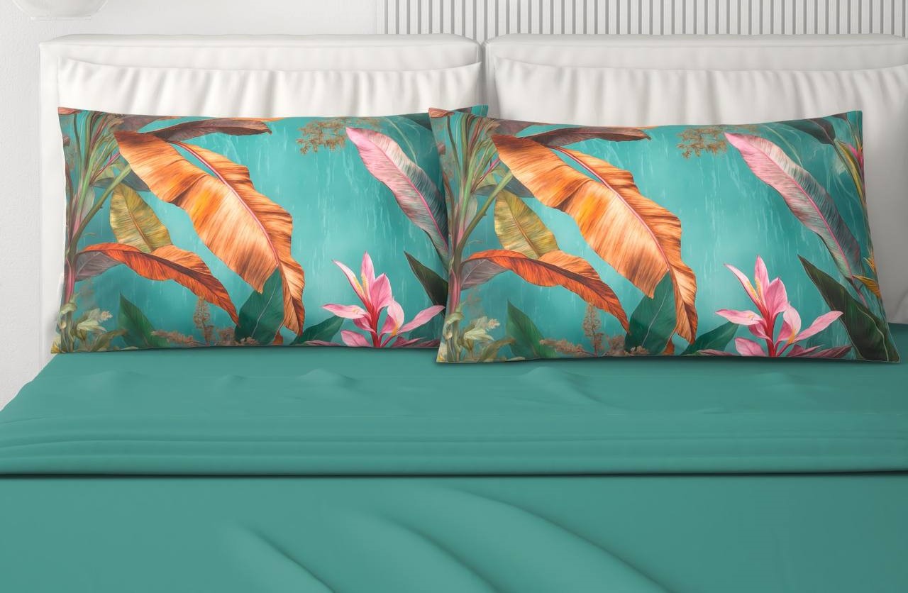Due federe in tinta unita abbinate ad altre due federe in stampa digitale