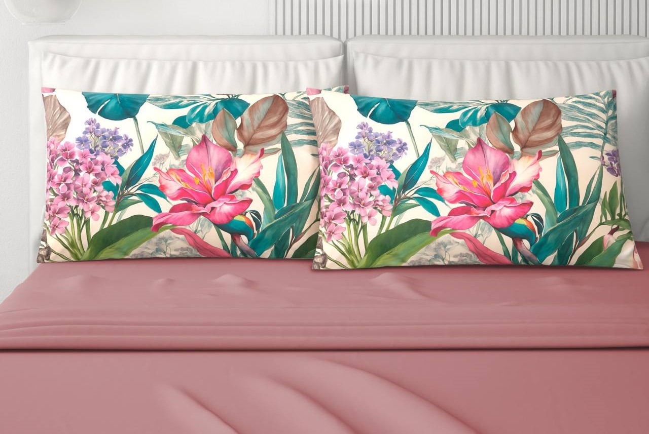 Due federe in tinta unita abbinate ad altre due federe in stampa digitale