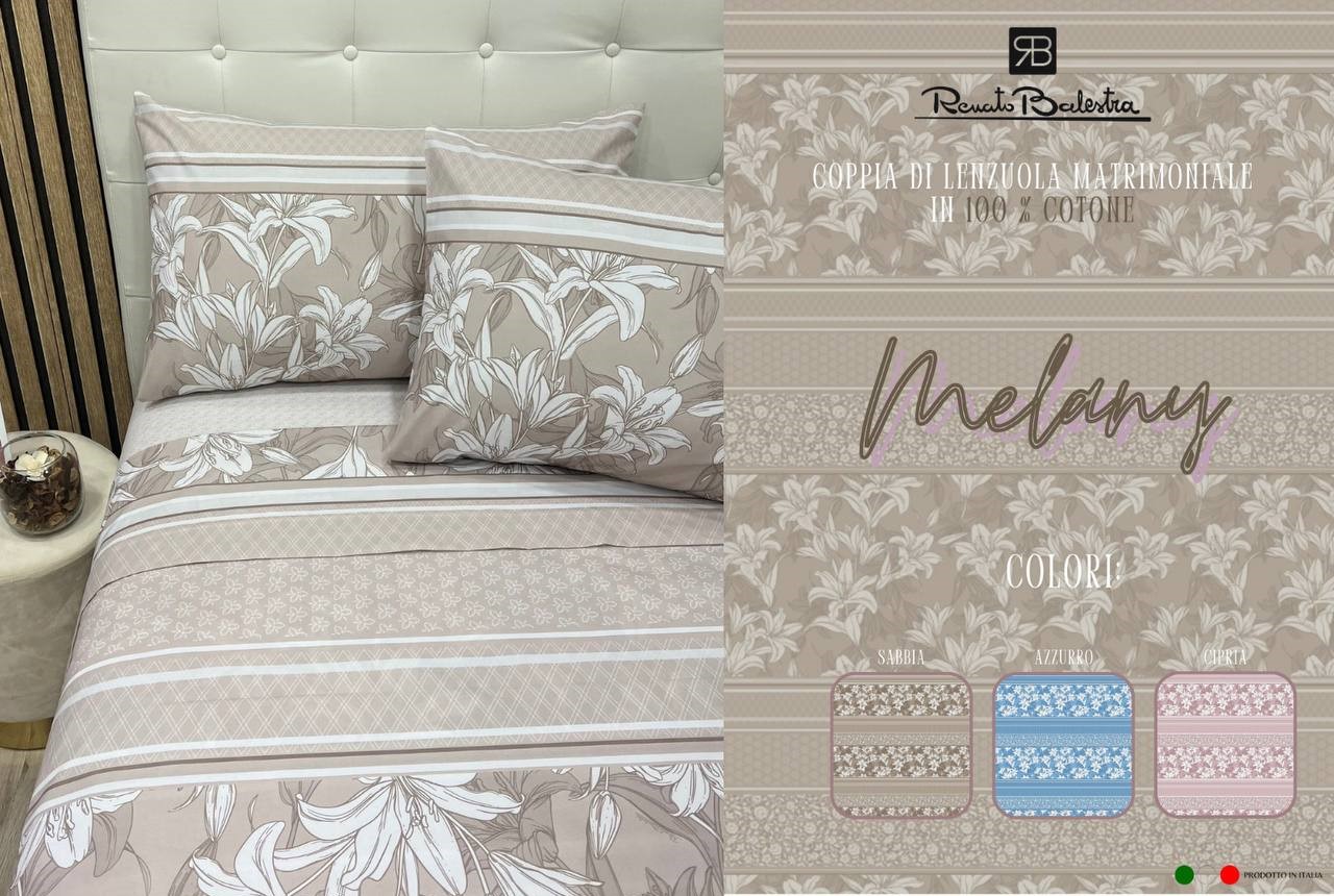 Coppia lenzuola Renato Balestra Melany 100% puro cotone in stampa digitale matrimoniale.