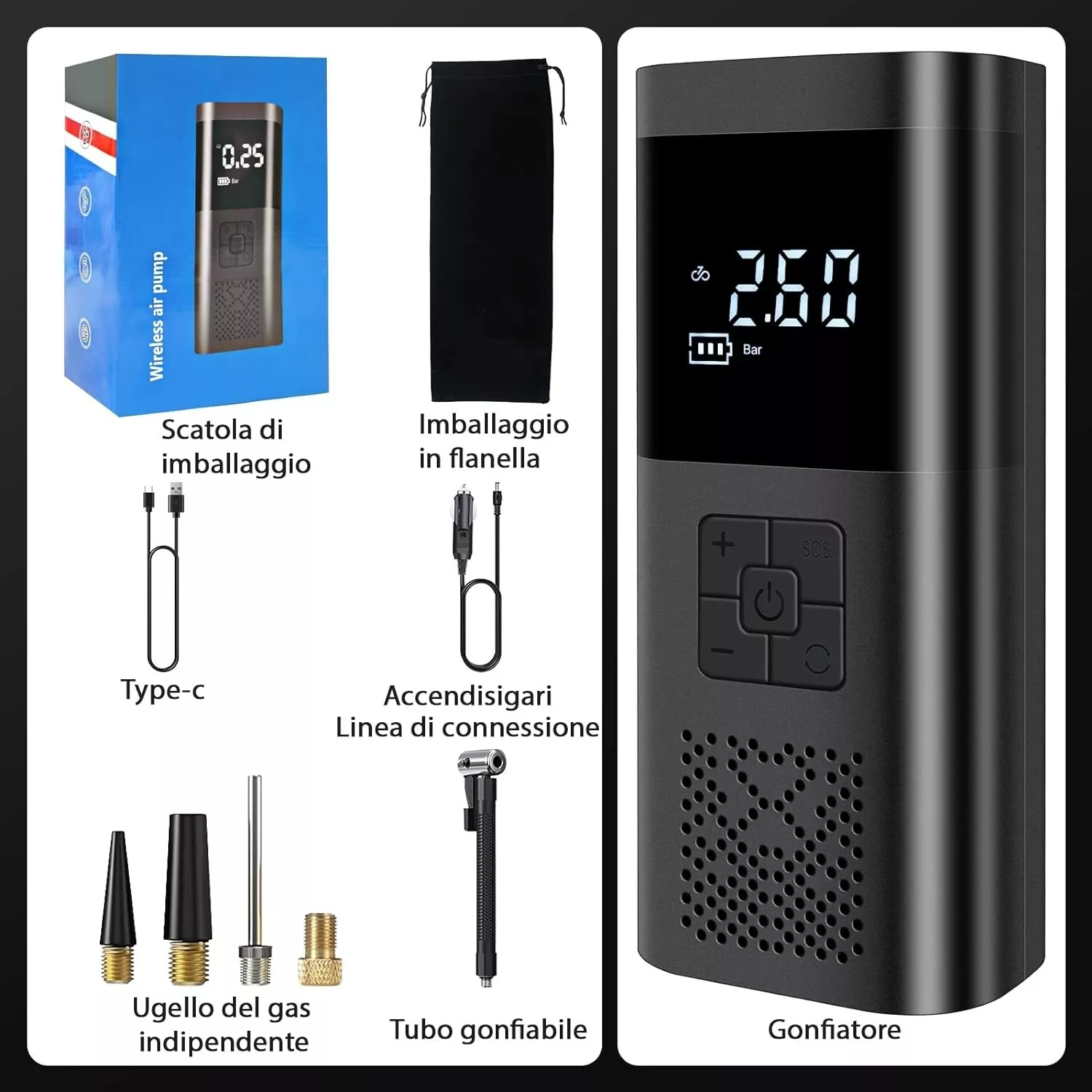 La pompa d’aria per auto ricaricabile è un dispositivo rivoluzionario nel mondo degli accessori per veicoli. Questa pompa, con la sua natura wireless, offre un livello di comodità e flessibilità senza precedenti per mantenere i tuoi pneumatici alla pressione ottimale.