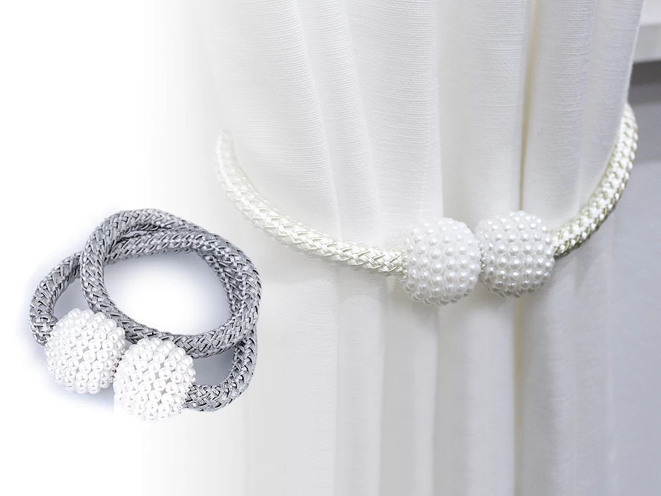 Coppia Fermatende 2 Pezzi Raccogli Tenda Con Perle Magnetico Con Calamita