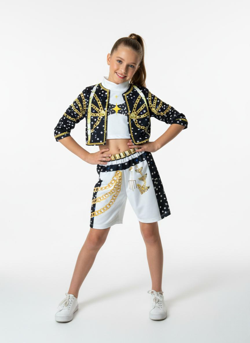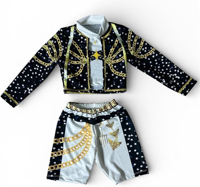 Costume di Carnevale per bambina/ragazza ispirato allo stile K-Pop fantasy “Cacciatrice Di Demoni”, moderno e scenografico. Perfetto per chi ama musica, danza e look da cantante pop con atmosfera dark-fantasy. Il vestito è composto da: -Giacca corta nera con dettagli decorativi -Top a collo alto coordinato, cucito all\’interno della giacca -Pantaloncino con inserti a contrasto Ideale per Carnevale, cosplay, feste in maschera, spettacoli, saggi di danza e recite.