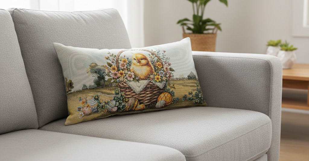Il cuscino arredo Vingi è un complemento decorativo festivo ideale per celebrare la Pasqua e la stagione primaverile, portando in casa colore, allegria e stile.