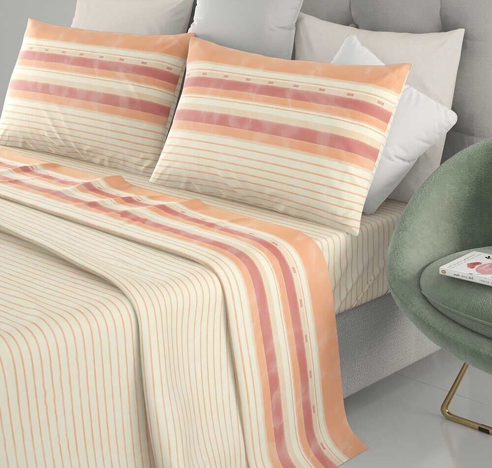 Lenzuola in 100% cotone, prodotta interamente in Italia, estremamente morbida e confortevole, di notevole qualità ed eleganza.