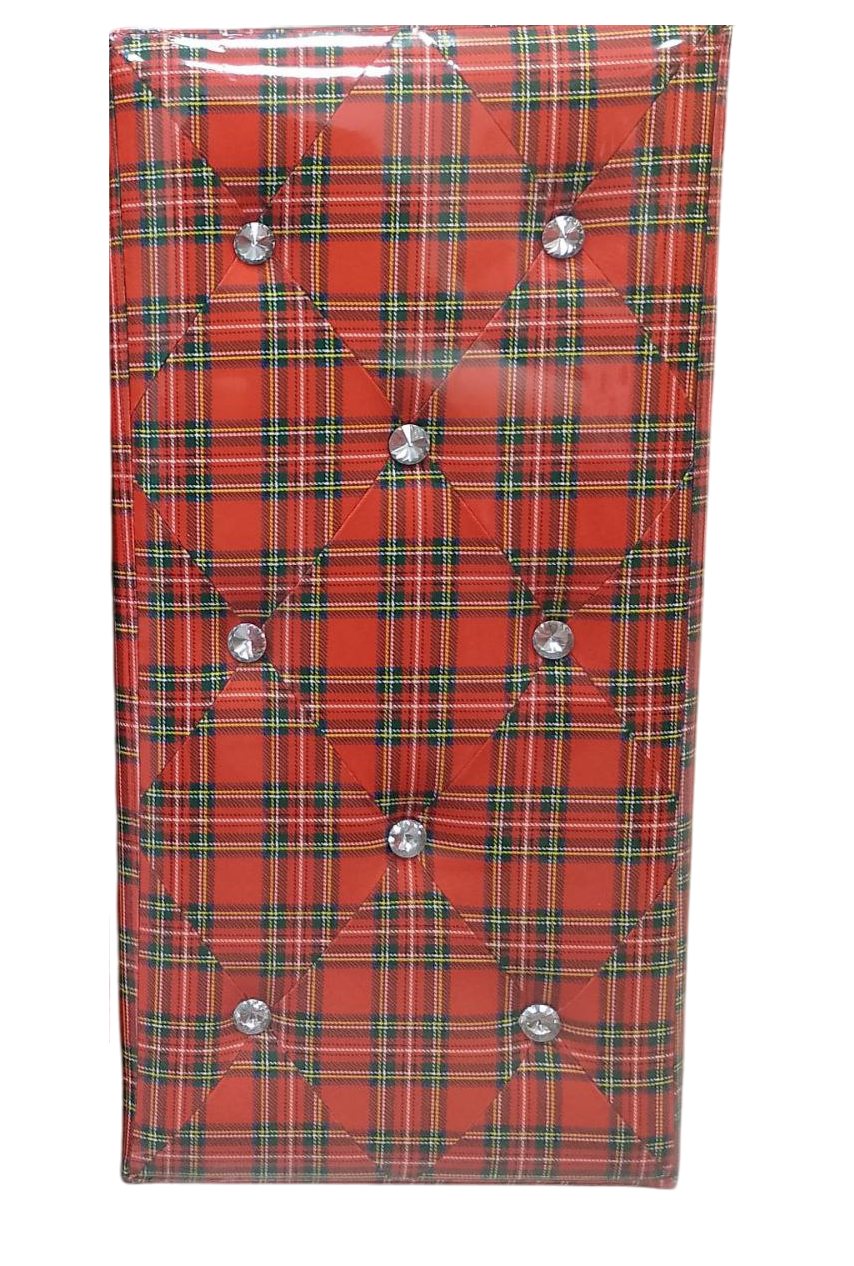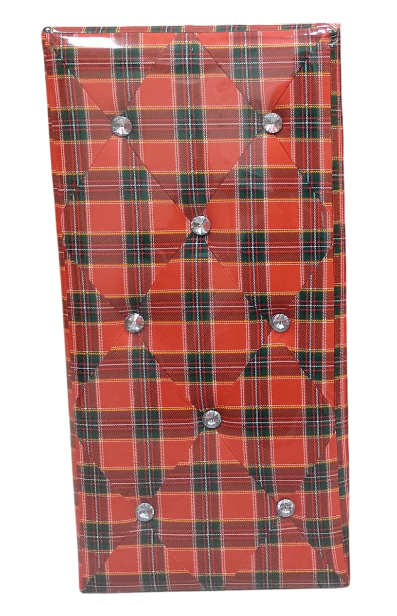Il pouf contenitore in ecopelle con decorazioni in Swarovski e fantasia scozzese è un complemento d\’arredo elegante e funzionale, ideale per aggiungere stile e praticità a qualsiasi ambiente della casa.