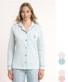La maglia a manica lunga con girocollo e abbottonatura frontale dona un tocco raffinato, mentre il pantalone lungo garantisce una vestibilità comoda e rilassata.
