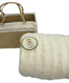 Il plaid è accompagnato da una borsa in feltro con manici rinforzati e fiocco decorativo, perfetta per riporre la coperta o per utilizzarla come pratica borsa portaoggetti. Un set elegante e funzionale, ideale anche come regalo per la stagione invernale.