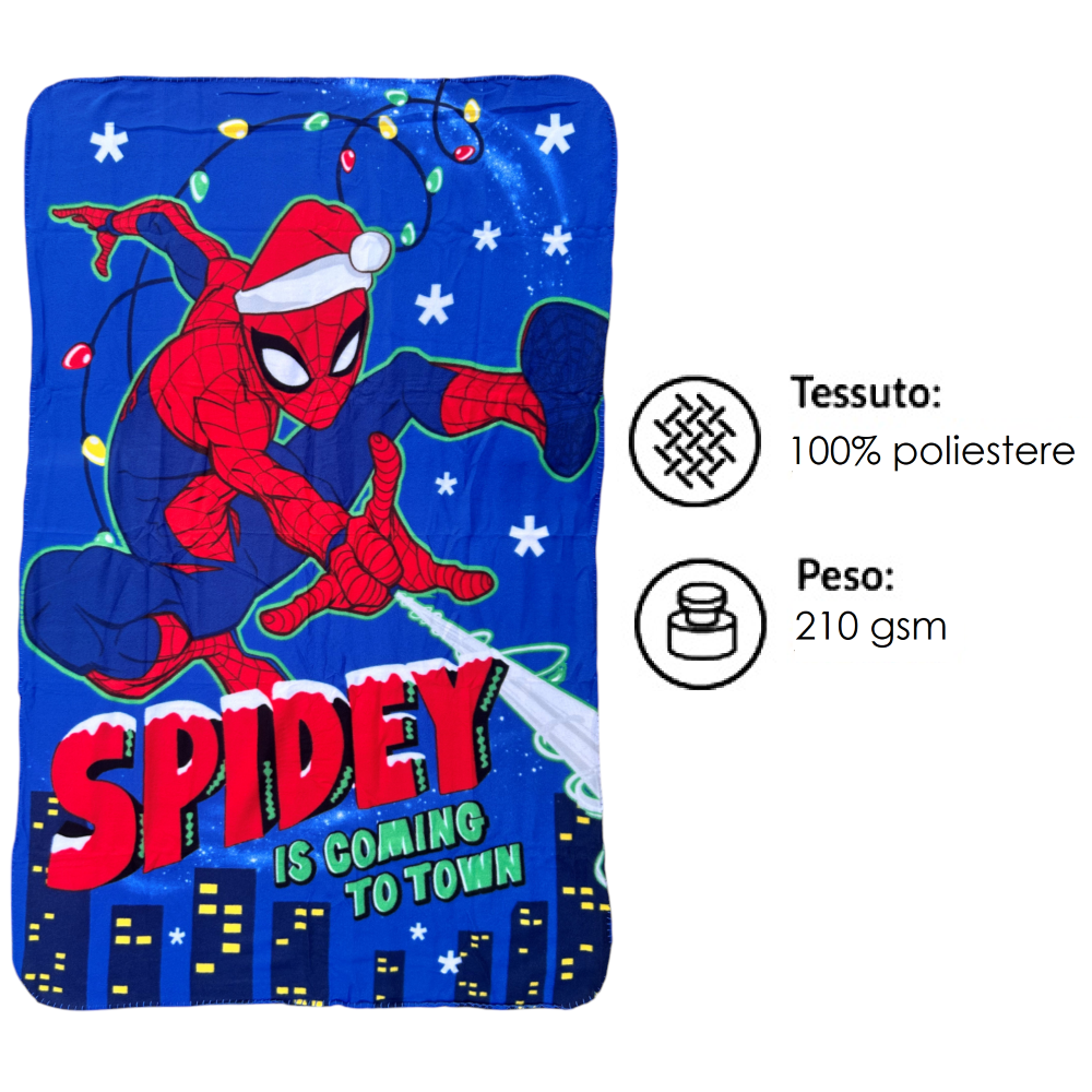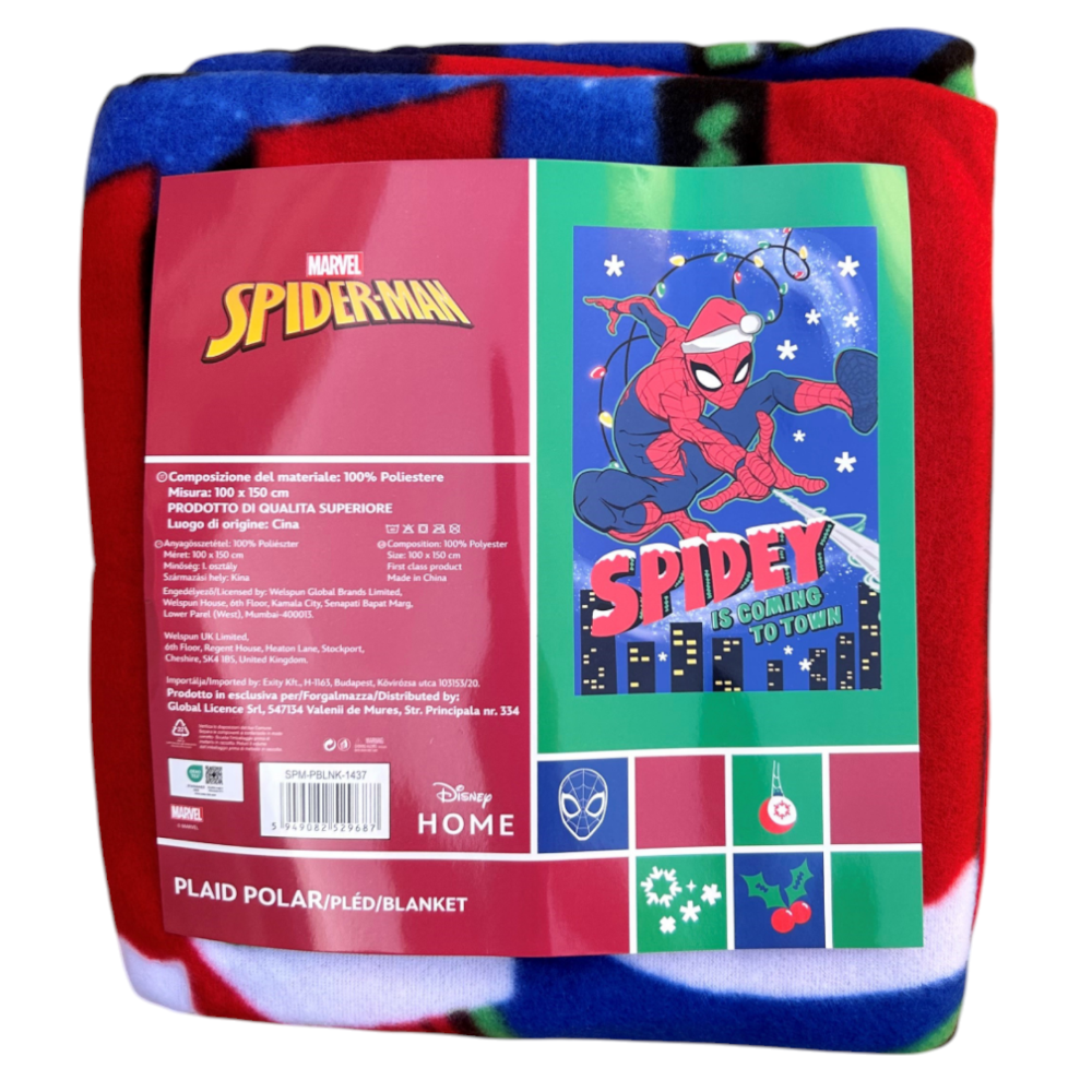 Realizzato in morbido pile, questo plaid è perfetto per scaldarsi durante le fredde giornate invernali. Il design natalizio ispirato Spiderman aggiunge un tocco divertente e festoso alla tua casa, ideale per creare un’atmosfera accogliente durante le feste. Leggero ma caldo, è perfetto da usare sul divano, sul letto o come idea regalo originale per amici e familiari.