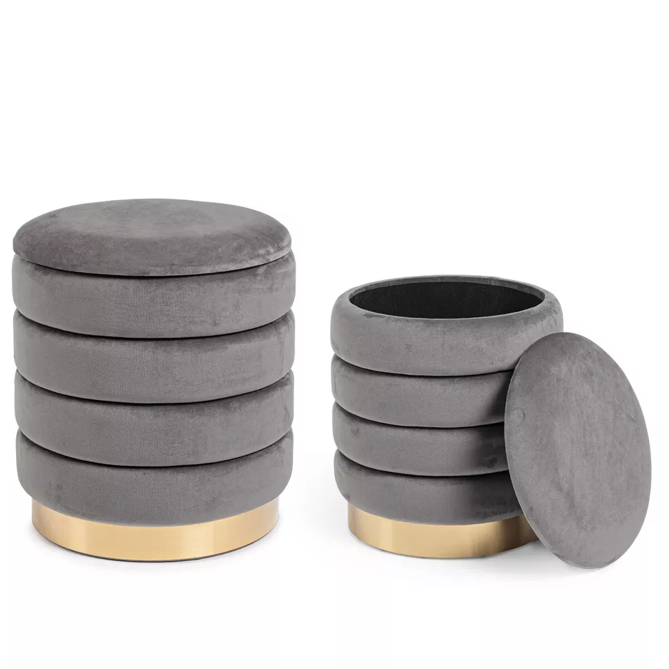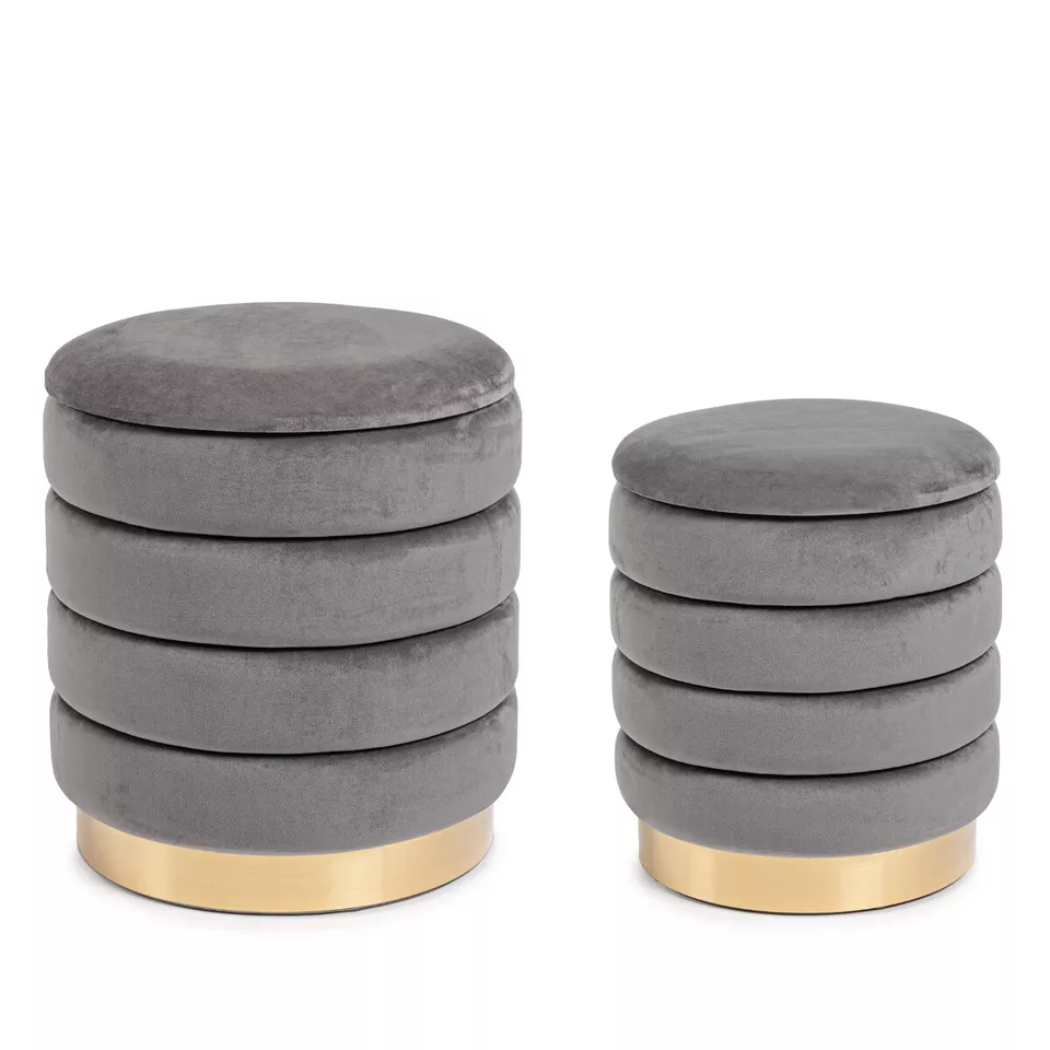 Rivestiti in tessuto poliestere effetto velluto, i pouf sono il dettaglio ideale per il tuo salotto. I pouf sono morbidissimi al tatto e molto confortevoli: trasformano il tuo soggiorno e la tua camera da letto offrendoti due posti a sedere in più. Possono anche essere utilizzati anche come poggiapiedi ed inoltre al loro interno è possibile posizionare oggetti di ogni tipo.