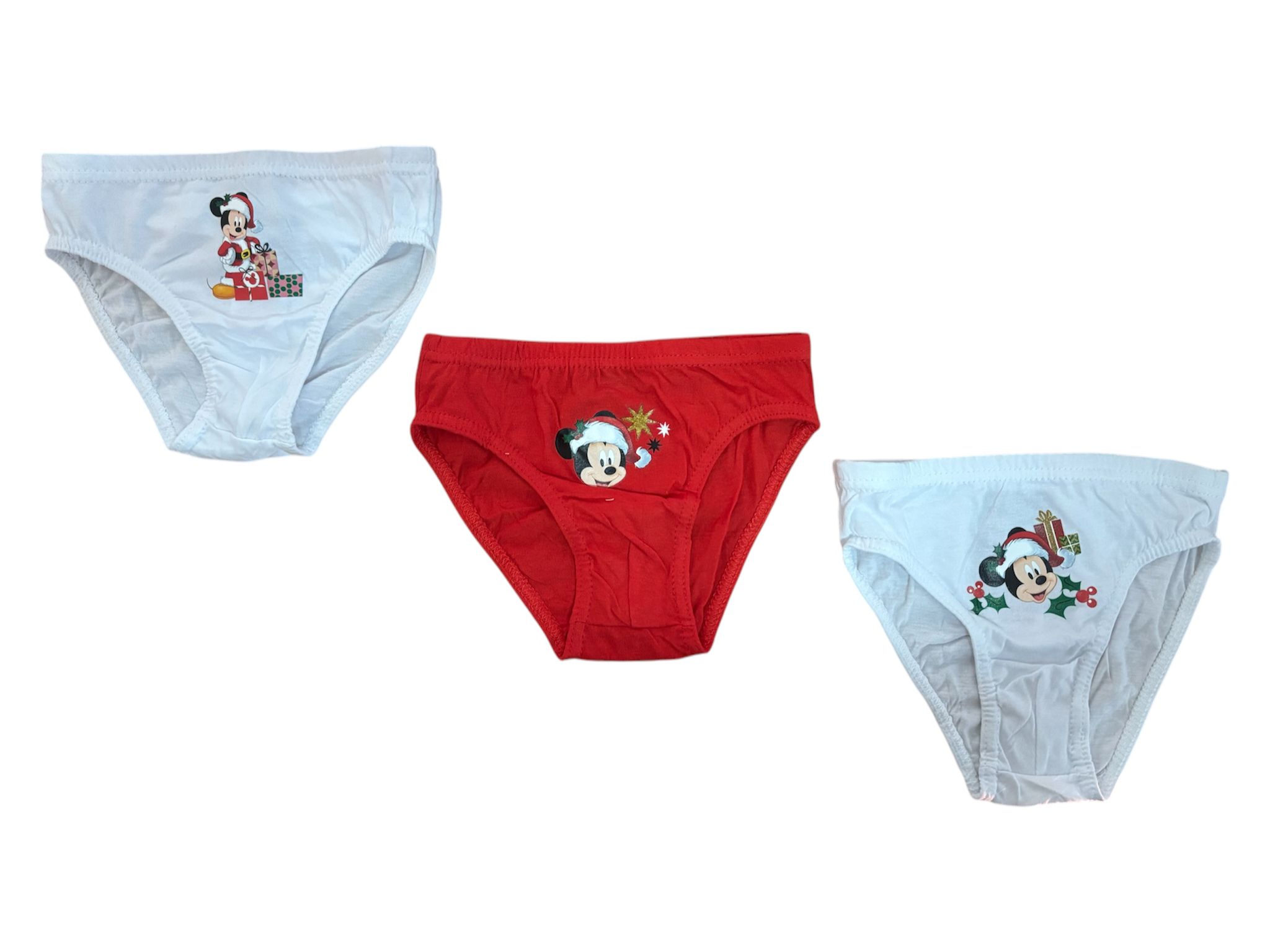 Set 3 Slip Mutandine Disney Mickey Mouse Natalizio Bambino Bimbo In Cotone