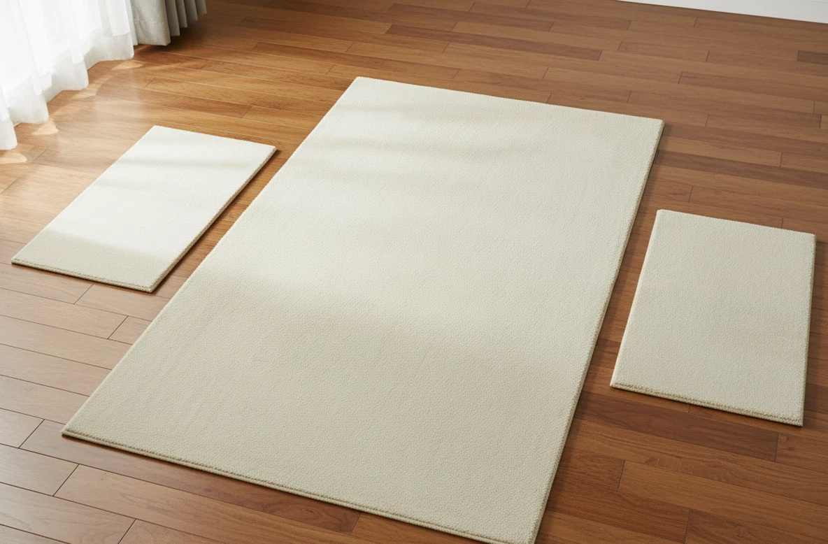 - Set Completo 3 Pezzi: Include un tappeto centrale più grande e due tappeti laterali coordinati.