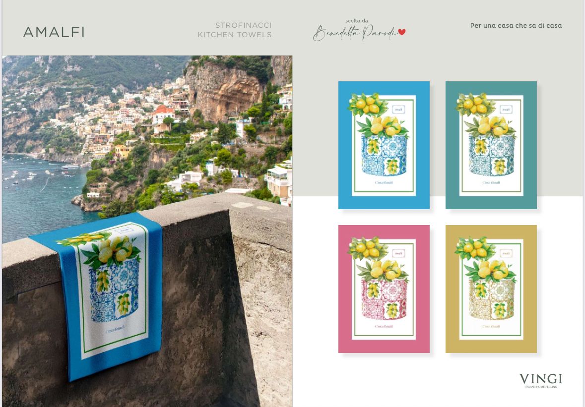 Gli strofinacci sono accessori versatili in cucina, utili per evitare scottature, per asciugare rapidamente le stoviglie e tanto altro. Arreda la tua cucina con il Set Strofinacci Costa d\’Amalfi, un tripudio di stile e funzionalità. Ogni pezzo presenta un motivo della costiera Amalfitana unico.