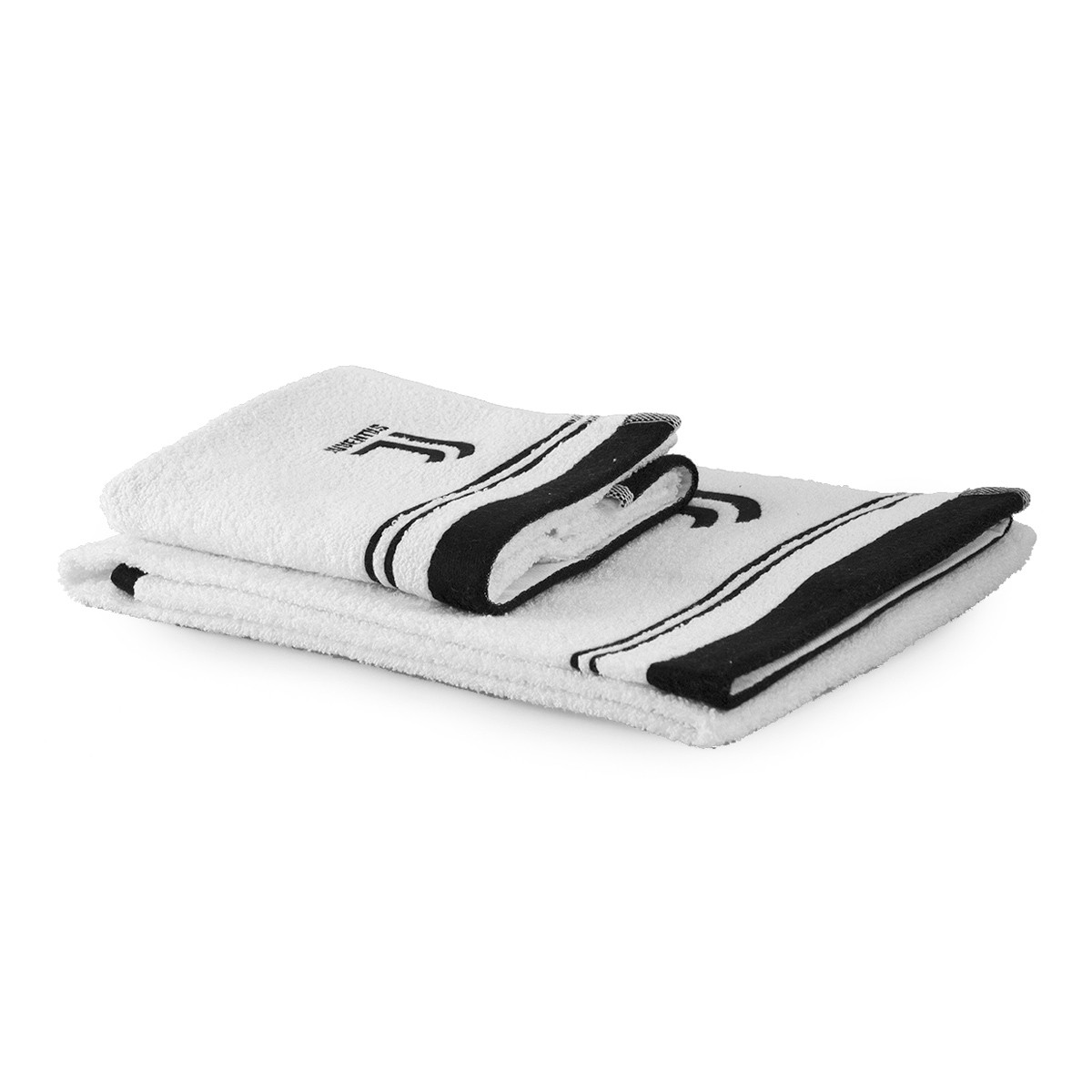 Il set ufficiale della squadra della JUVENTUS è realizzato in morbida spugna di cotone, morbido e soffice sulla pelle è caratterizzato dai classici colori bianco nero. La confezione contiene un set in spugna della squadra di calcio JUVENTUS composto da: 1 asciugamano viso, 1 asciugamano ospite.
