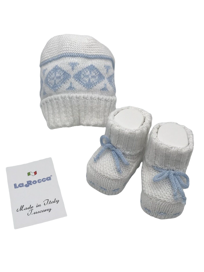 Set Neonato Cappello Ricamato + Scarpine Ricamate “La Rocca” 100% Cotone