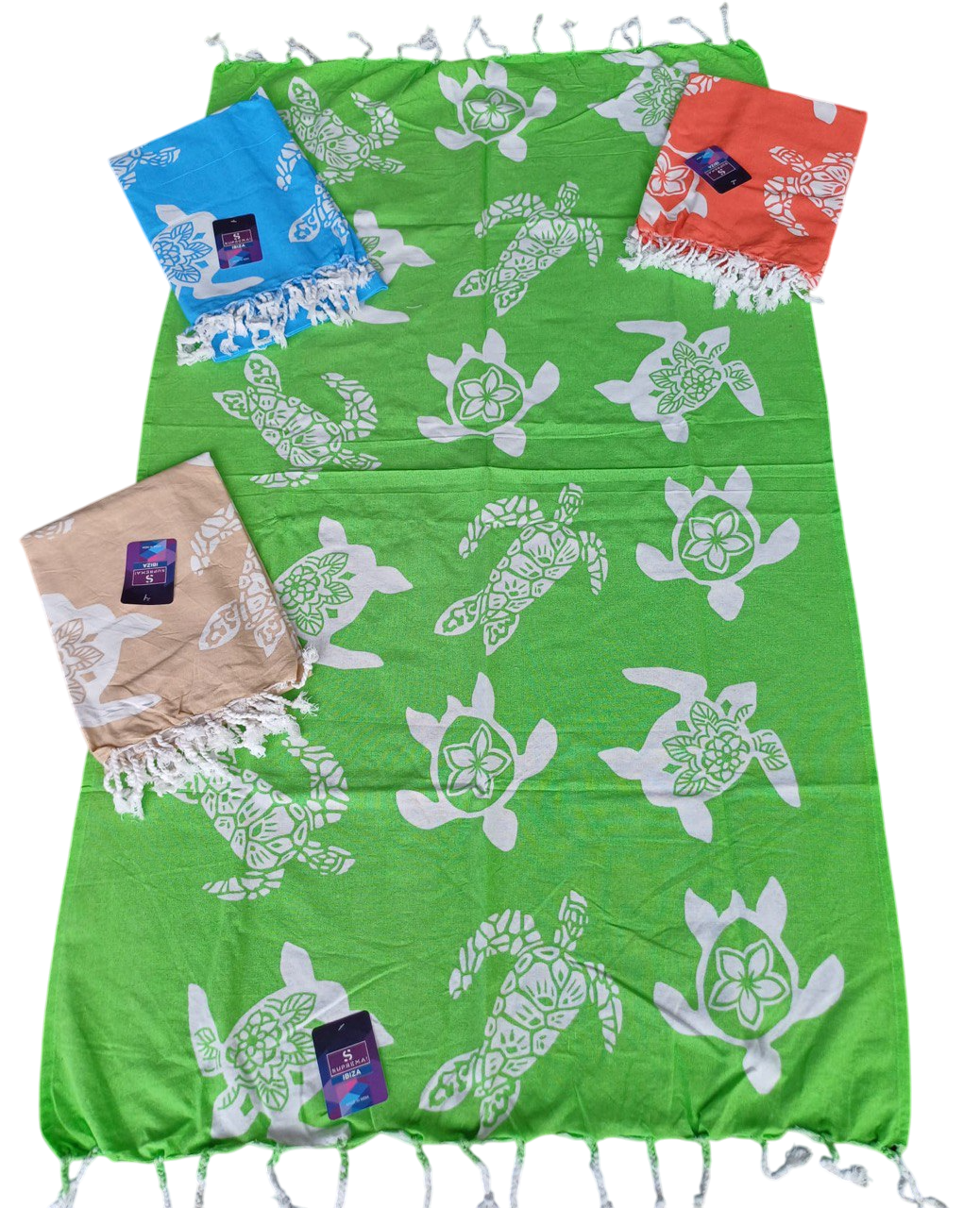 Telo Mare Fouta Spiaggia Con Frange Misure 90×170 cm Cotone Stampa Tartaruga