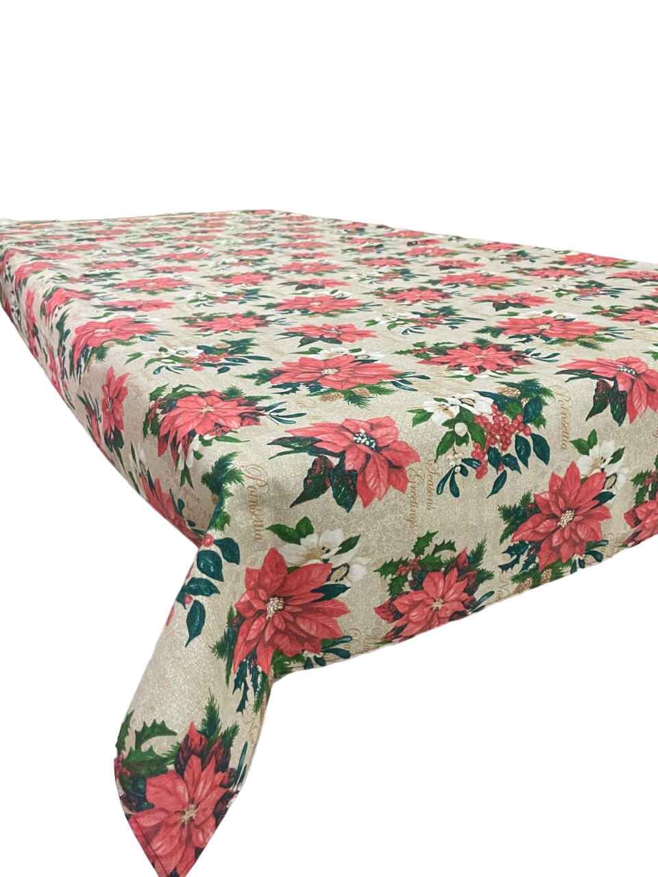 Tovaglia Natalizia Natale Copritavola Per 6-12 Posti Lavabile 100% Cotone Panama