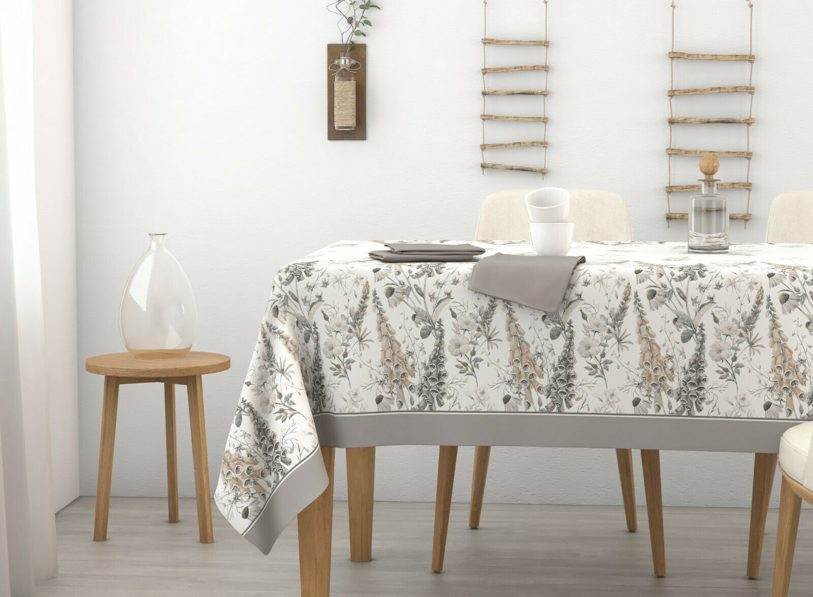 TOVAGLIA in 100% cotone con motivi floreali e stampa di lavanda su fondo bianco e balza in tinta unita a contrasto.