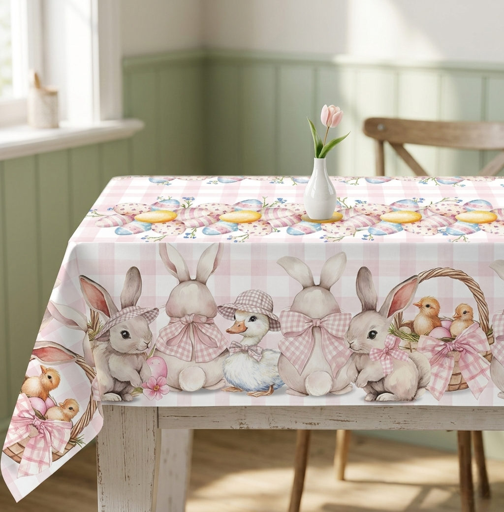 Rendi speciale la tua tavola con questa tovaglia pasquale in stampa digitale, ideale per decorare cucina e sala da pranzo durante il periodo primaverile. La grafica ad alta definizione garantisce colori brillanti e dettagli nitidi, perfetti per creare un’atmosfera accogliente e festosa.