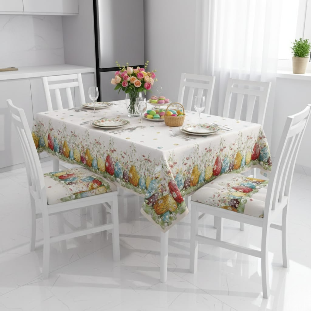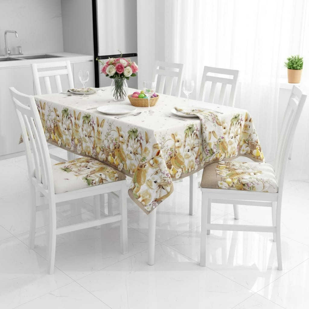 Rendi speciale la tua tavola con questa tovaglia pasquale in stampa digitale, ideale per decorare cucina e sala da pranzo durante il periodo primaverile. La grafica ad alta definizione garantisce colori brillanti e dettagli nitidi, perfetti per creare un’atmosfera accogliente e festosa.