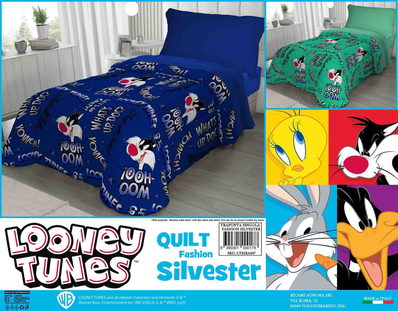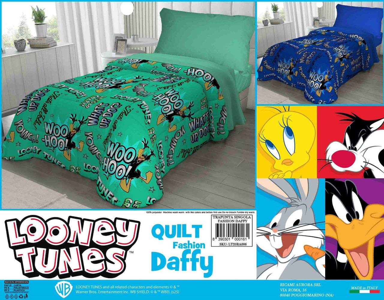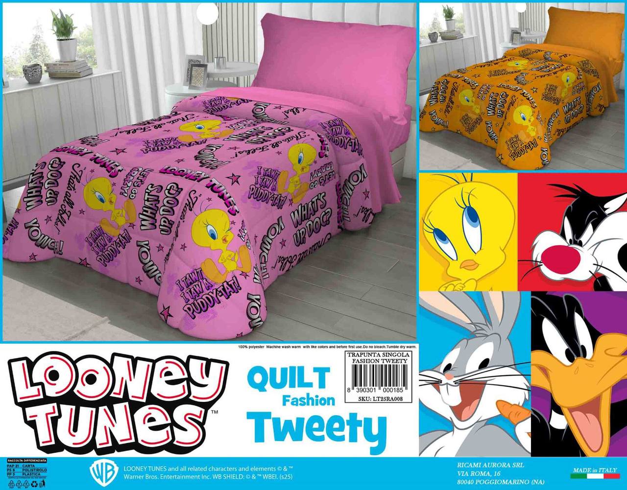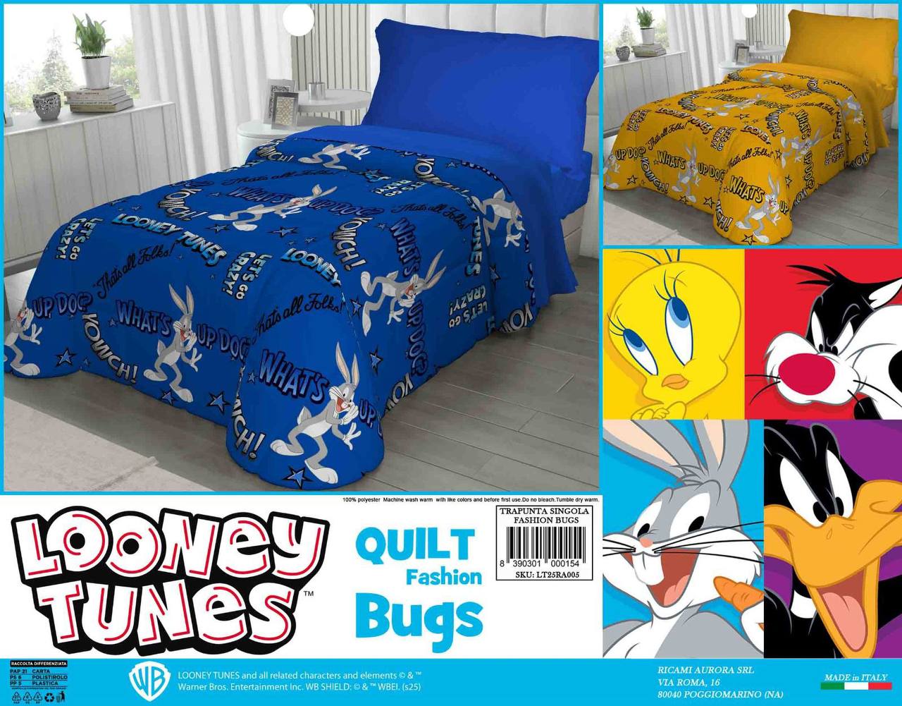 La trapunta dei Looney Tunes ha un design colorato e vivace, con personaggi iconici come Bugs Bunny, Daffy Duck, Titti e Silvestro che sono amati da tutti i bambini!