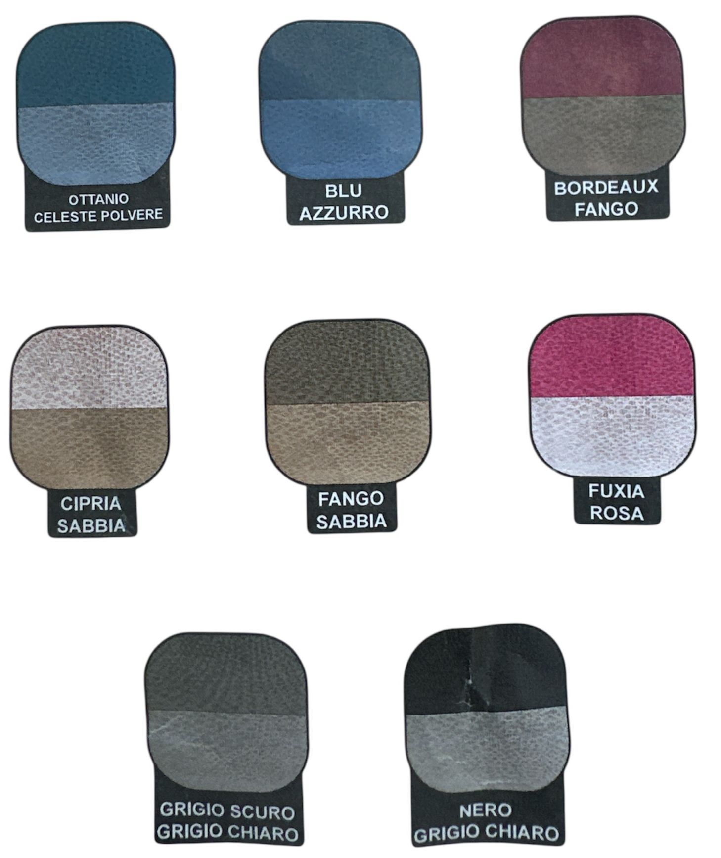 | Colore | Ottanio, Fango, Blu, Bordeaux, Cipria, Fucsia, Grigio Scuro, Nero |