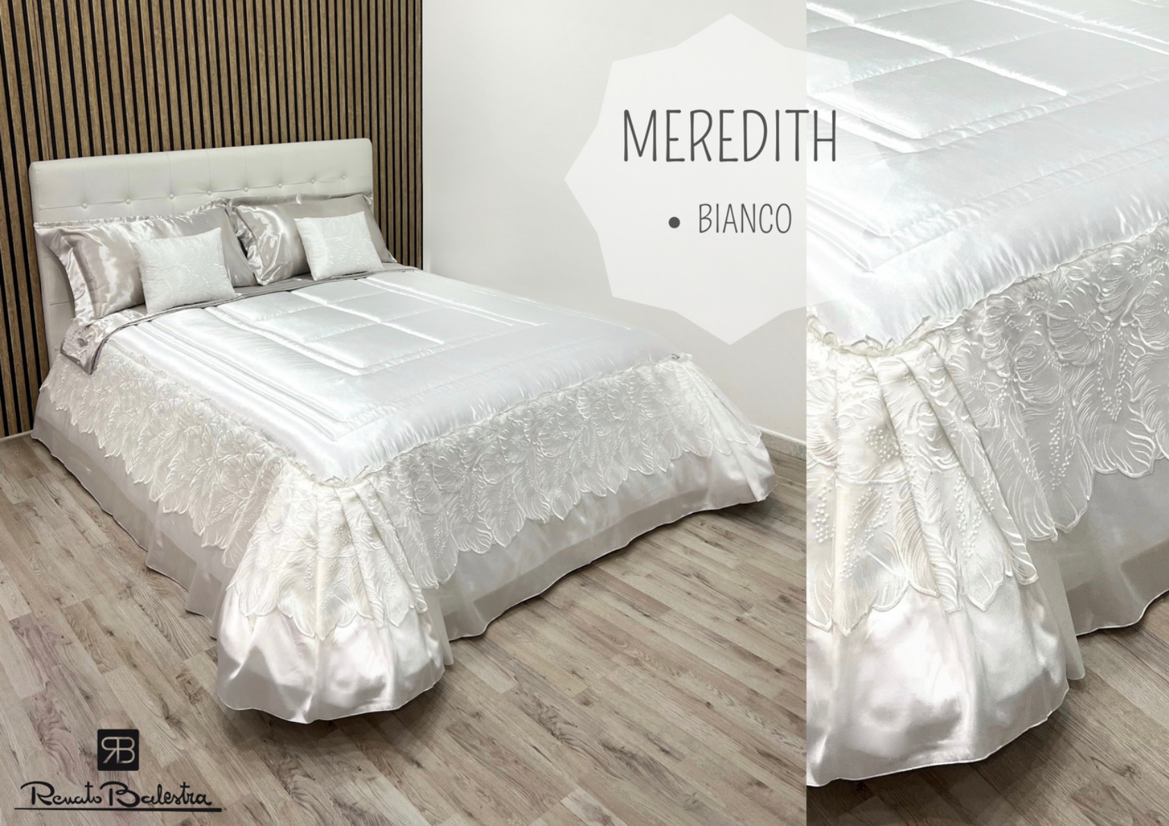 La trapunta Meredith firmata Renato Balestra racchiude questi elementi Glamour, tendenza e stile in una sintesi sofisticata di eleganza pura.