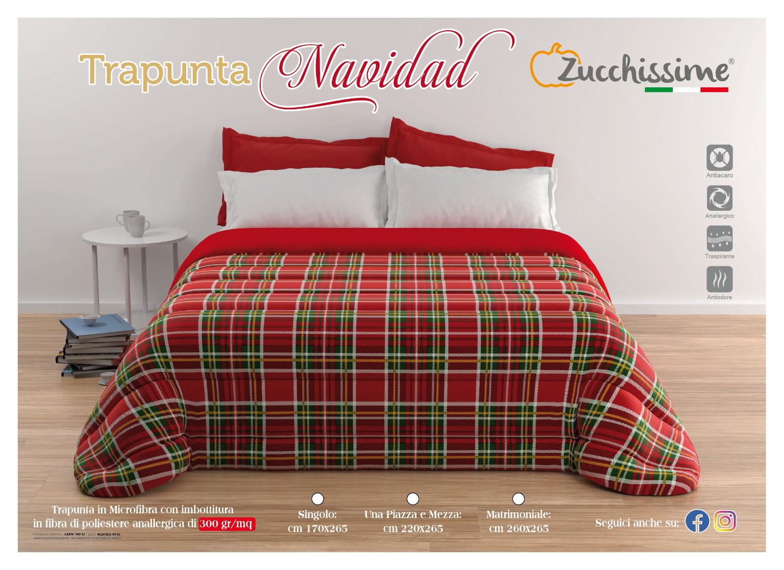Lasciati avvolgere dalla magia del Natale ogni sera, con la trapunta Zucchissime Navidad, un abbraccio rosso che profuma di festa, di casa, di amore.