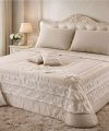 Trapuntino elegante e luminoso, realizzato in raso con raffinata trapuntatura a rombi che dona un effetto tridimensionale ricercato e sofisticato. La superficie leggermente lucente valorizza la camera con un tocco di classe, mentre la balza finale con delicato pizzo aggiunge un dettaglio romantico e prezioso. Morbido e avvolgente, è ideale per la mezza stagione e perfetto per vestire il letto con armonia ed eleganza, creando un’atmosfera accogliente e di grande raffinatezza.