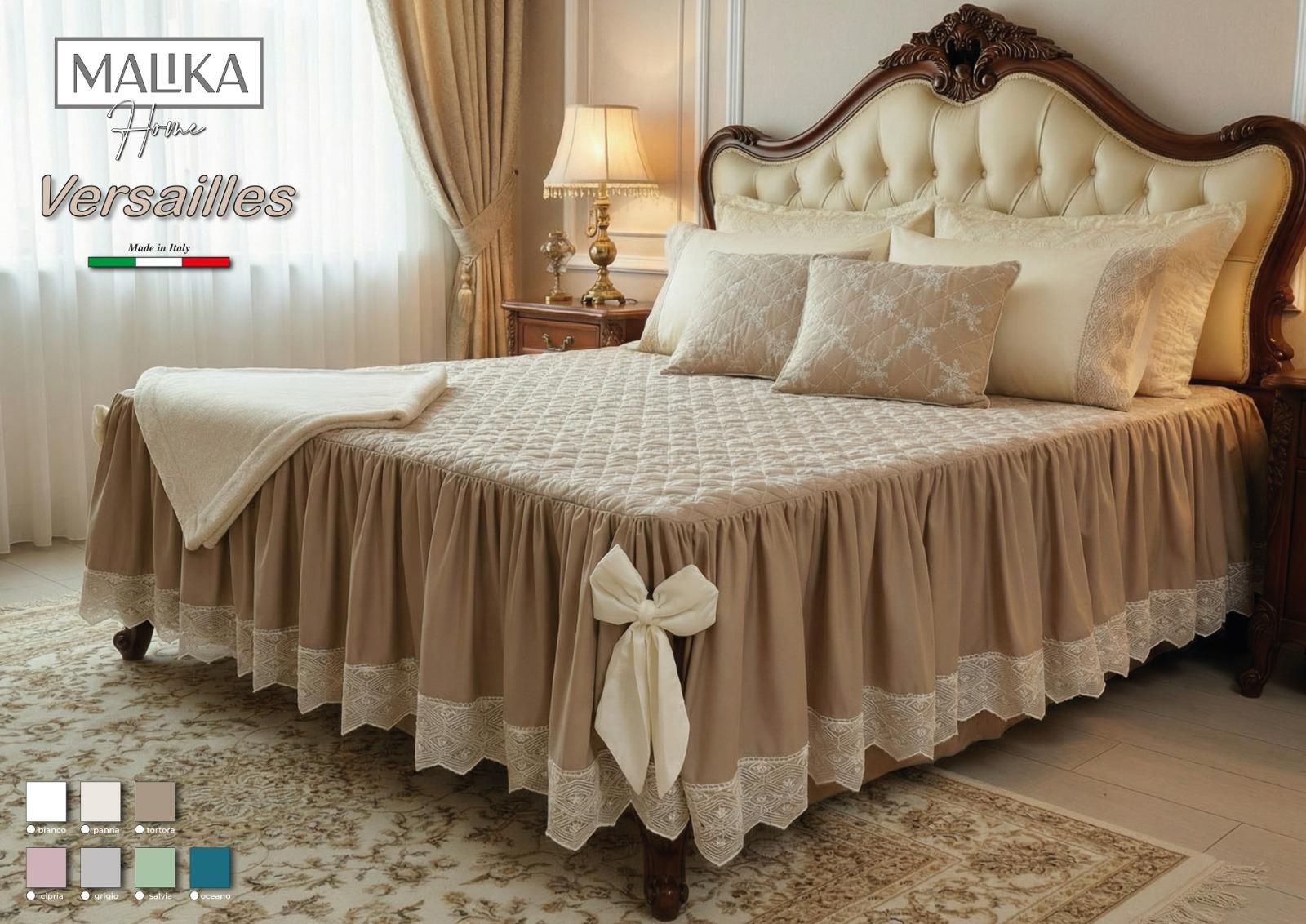 Rendi la tua camera da letto elegante e raffinata con il Trapuntino Versailles, un capo dal fascino romantico realizzato con cura artigianale e produzione interamente italiana 🇮🇹.