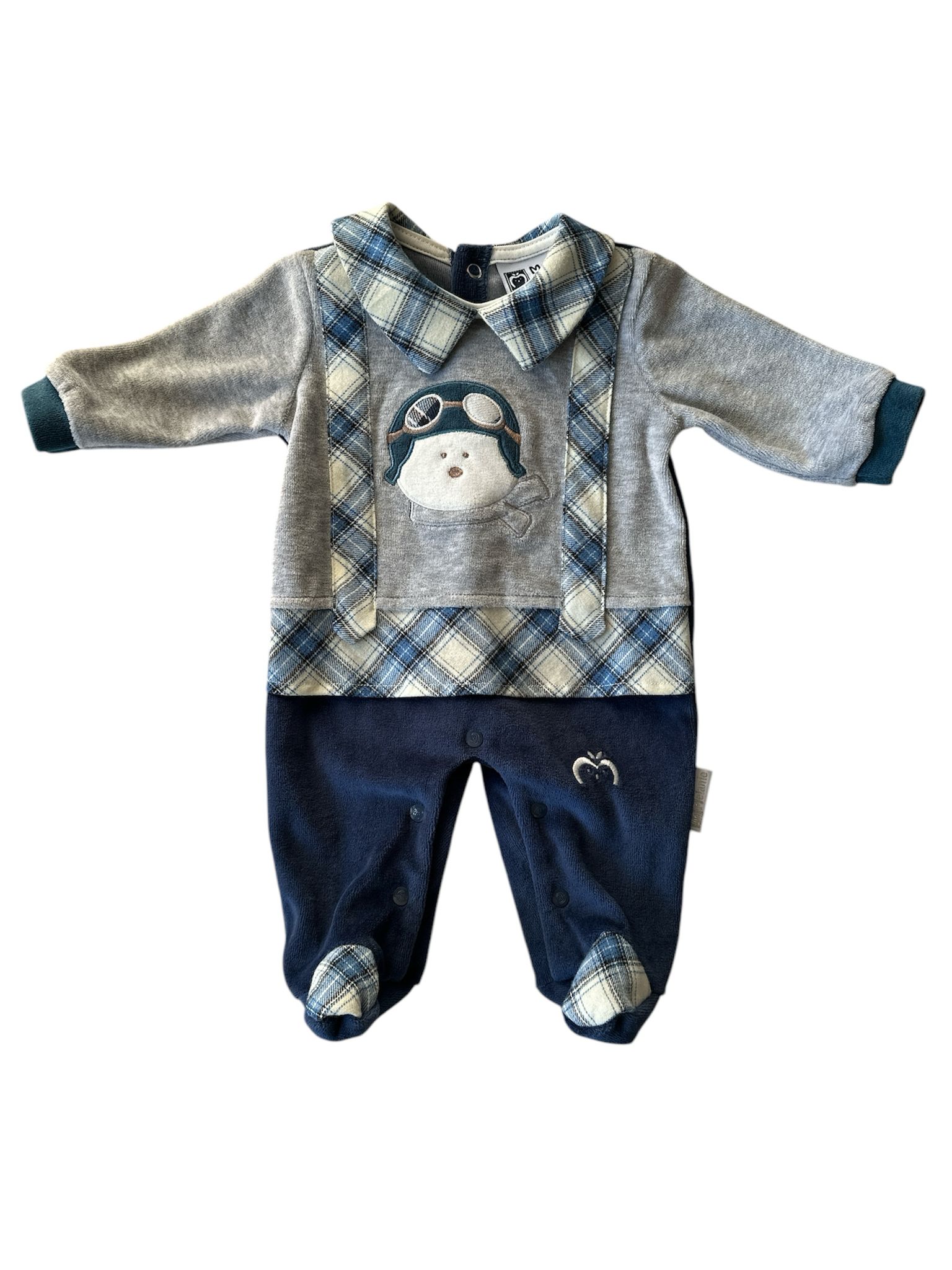 Tutina Neonato Intera In Ciniglia Per Bimbo Maschietto Manica Lunga Invernale