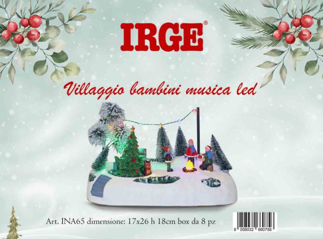Porta la magia delle feste nella tua casa con questo incantevole Villaggio Natalizio IRGE. Ricco di dettagli e atmosfera, presenta una scena con bambini invernali e un grande albero di Natale illuminato. Grazie al movimento, alle luci LED colorate e alle melodie natalizie integrate, crea un’atmosfera calda e suggestiva perfetta per il periodo delle feste.